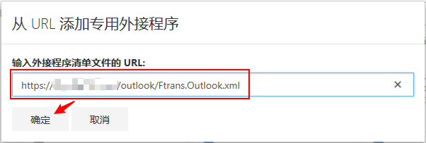 输入外接程序清单文件的URL完成安装:在弹出的“从URL添加专用外接程序”窗口中,输入“